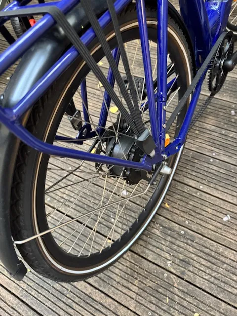 Le moteur roue arrière est intégré directement dans le moyeu de la roue. Il agit indépendamment de la chaîne, ce qui simplifie la mécanique. La sensation de conduite est différente. Le cycliste ressent une poussée vers l’avant, comparable à une propulsion fluide.