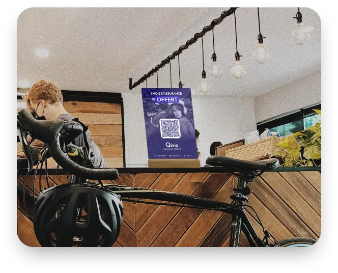 Nous vous fournissons un présentoir et un QR code que vous posez sur votre comptoir. Votre client scanne ce QR code et reçoit votre code d'affiliation par SMS lui donnant le droit à un mois offert chez Qivio.